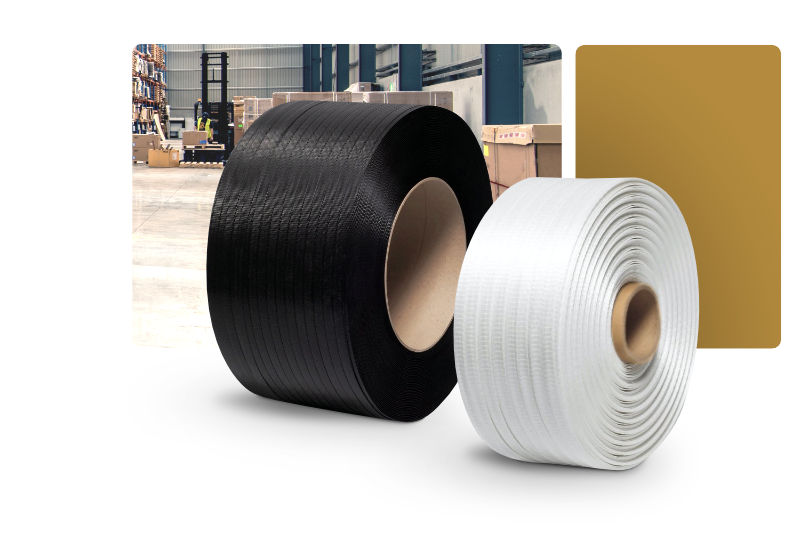 Dodáváme vázací pásky vhodné k fixaci kartonových krabic nebo palet se zbožím. Mají vysokou pevnost a odolnost proti roztržení.